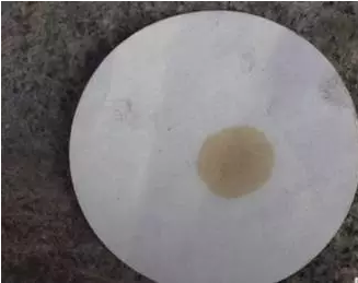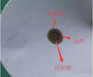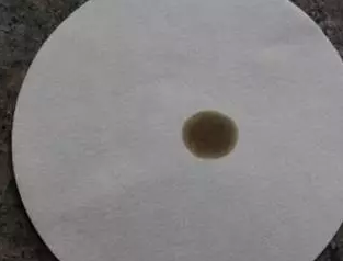 1.准备一张空白的测试纸,然后从汽车发动机里面取出使用过的机油滴在空白的机油纸上面,如下图所示。