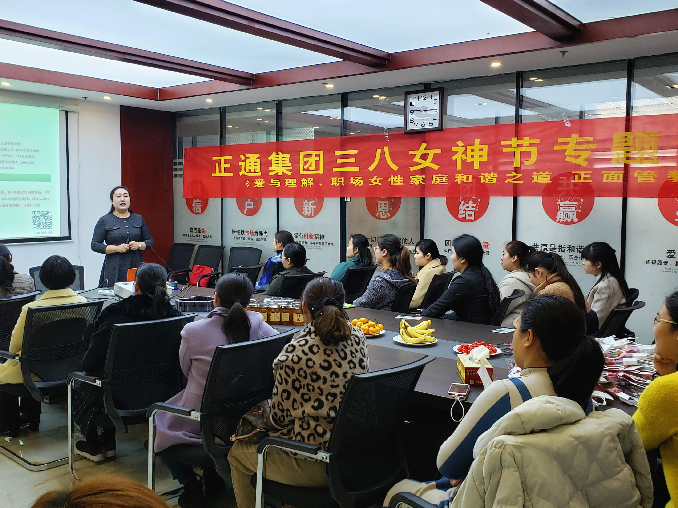 集团行政中心总监王学艳在讲座后总结道:在当代社会体系中,女性是维系家庭、企业、社会和谐的重要力量,都说家和才能万事兴,所以集团今年的庆三八活动特别举办了一堂讲座,让所有女同事学习如何理顺家庭与工作关系,如何教育子女、读懂子女情绪,轻松愉快的照顾家庭、陪伴孩子。公司相信,只有把家庭照顾好了,子女问题不再忧心了,我们广大职工们才能以充足的精神投入到工作中去,在职场中充分发挥女性的才干与魅力。希望各位同事能将今天的讲课内容学以致用、融会贯通,使得我们的家庭幸福美满、事业收获颇丰。最后,再次祝大家节日快乐!