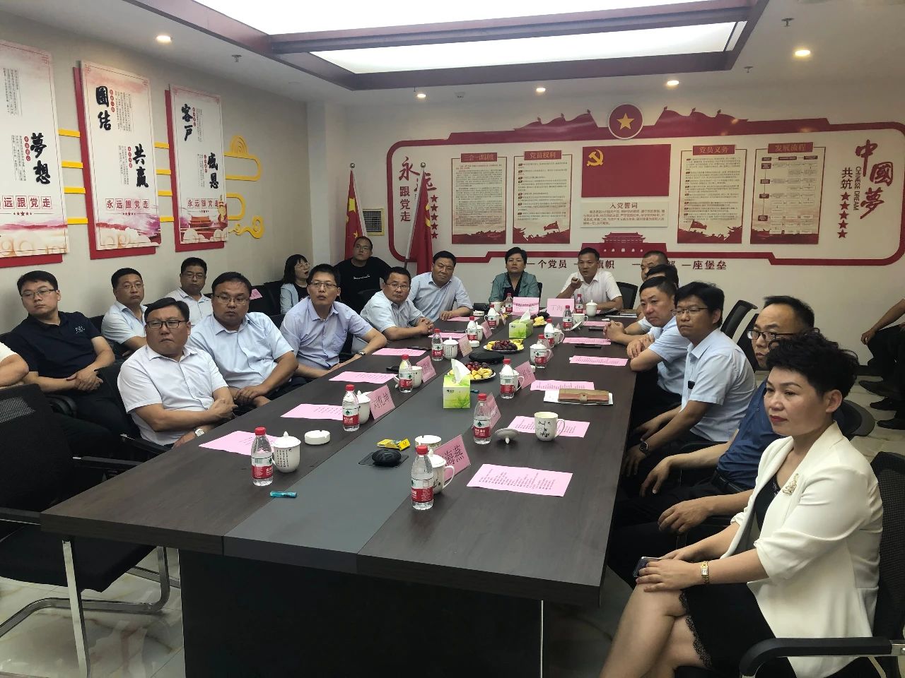 ▲观看集团宣传片,丁海峰董事长向各位领导作集团介绍